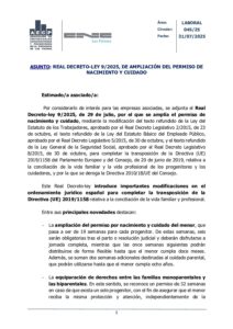 31-07-2025_laboral_045_RDley 9-2025_Ampliacion del permiso de nacimiento y cuidado